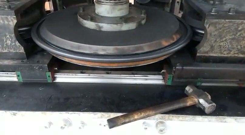 2、“預(yù)彎系統(tǒng)”根據(jù)所要求的彎邊直徑,對(duì)工件邊緣施力預(yù)彎。