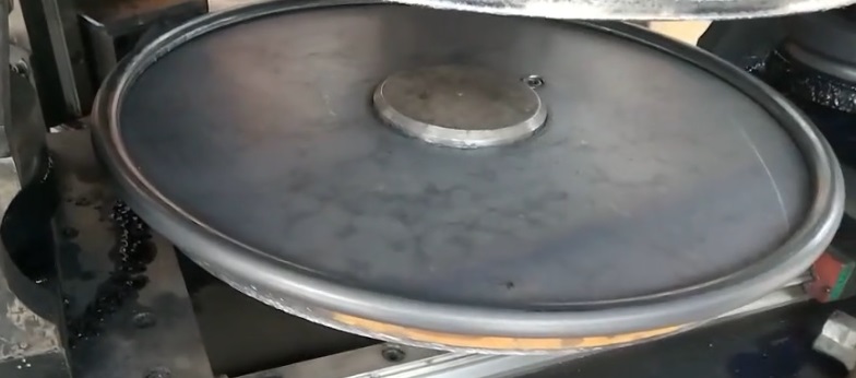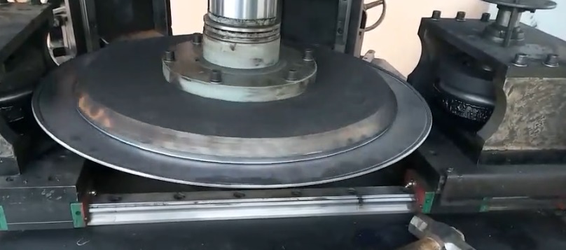 3、“初次彎邊”將圓盤需要卷成圓管的周長(zhǎng)一次彎夠,工件的邊緣先彎成約180o的圓弧。